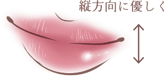 - 横塗りではなく唇のシワの方向に沿って、縦方向に優しく塗る。